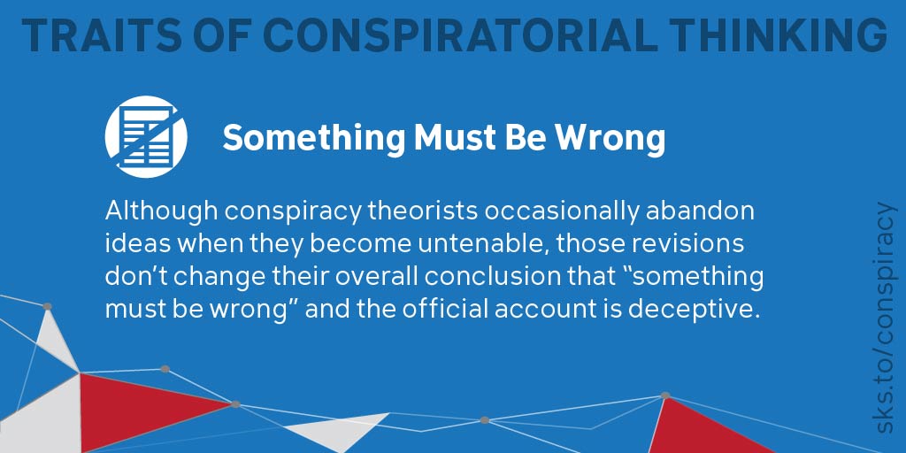 5/9 SOMETHING MUST BE WRONG: Although conspiracy theorists occasionally abandon specific ideas when they become untenable, those revisions don’t change their overall conclusion that “something must be wrong” & the official account is based on deception.
